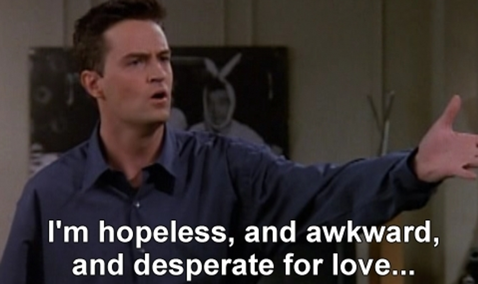 Chandler is an overlooked character. His comedic relief portrays him as a lighthearted, funny guy. Although this does describe Chandler, he is much more than that. Chandler needs his friends every single day. He depends on those close relationships. Of course, Chandler is an awkward guy. Underneath of all his sarcastic comments is a sweet guy. Chandler shows us that it's okay to need your friends. We do not need to be tough all of the time. Sometimes friendships bring the biggest joy to our lives.