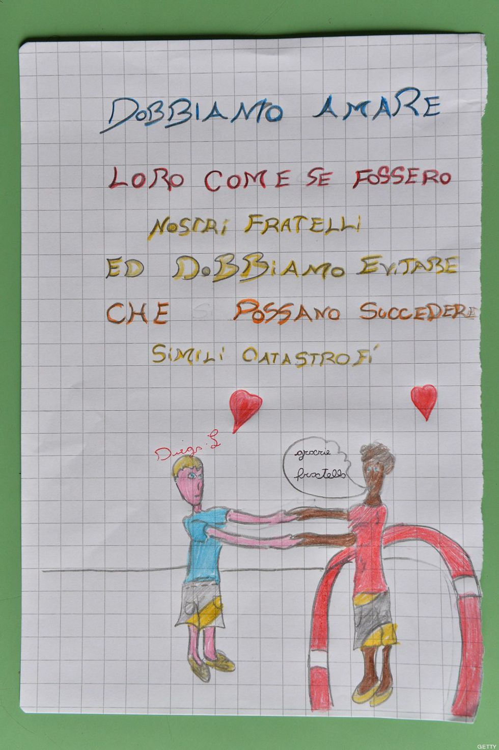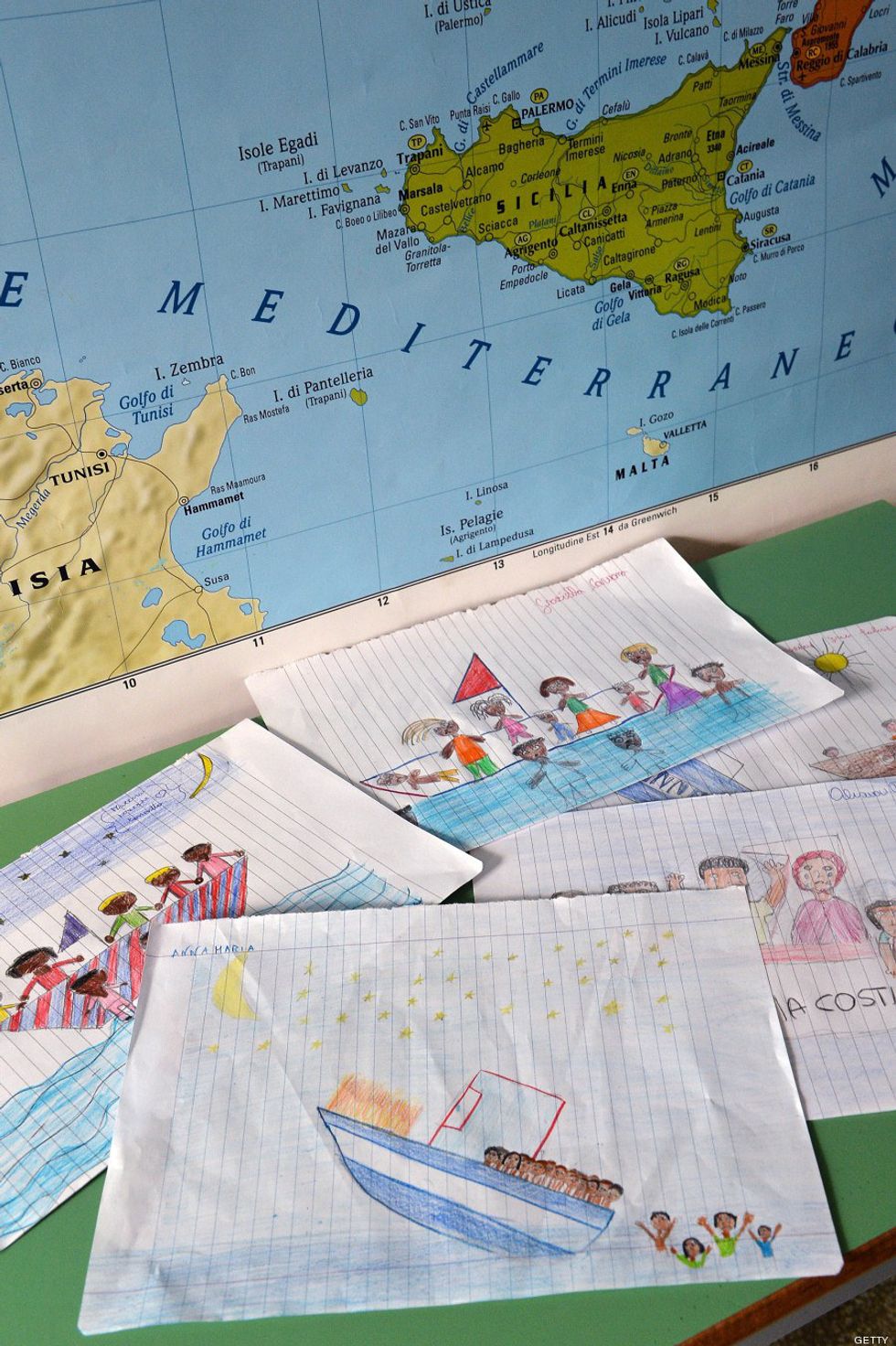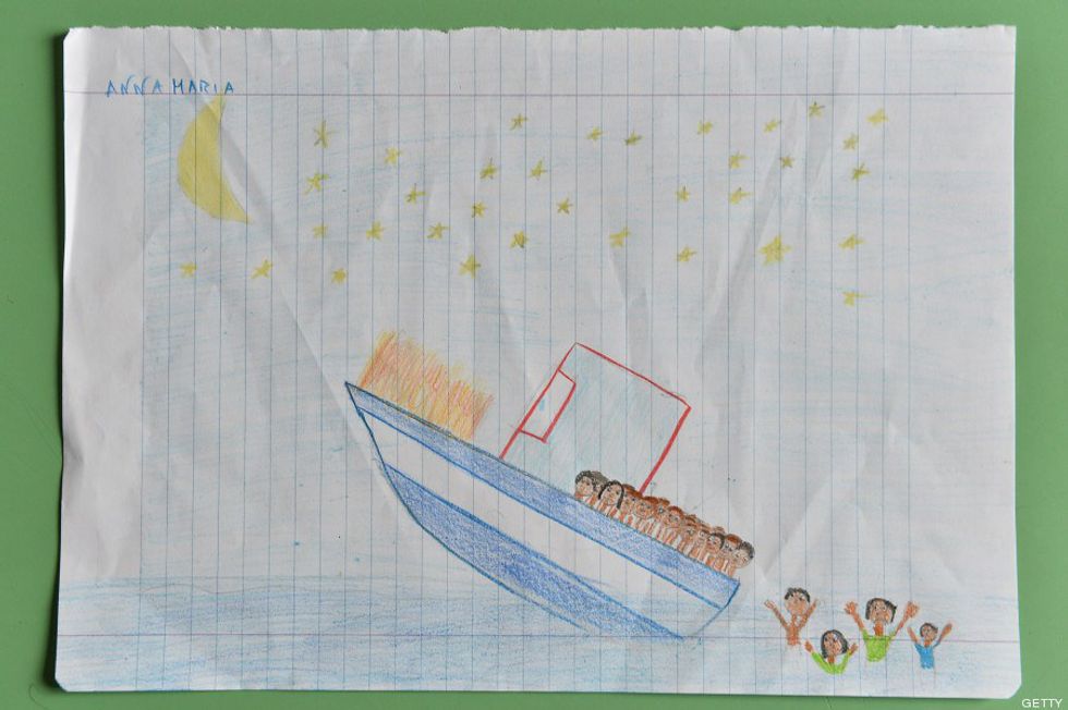Rumi, the famous Persian poet, once wrote “the wound is where the light enters.” That line becomes especially relevant when you take a look at the numerous children’s drawings that were created in response to the unfortunate Lampedusa shipwreck. Students at Lampedusa’s elementary school, with the help of their teacher, were inspired to respond to the children who drowned on the boat that day, and they do so with colorful and heartbreaking clarity.