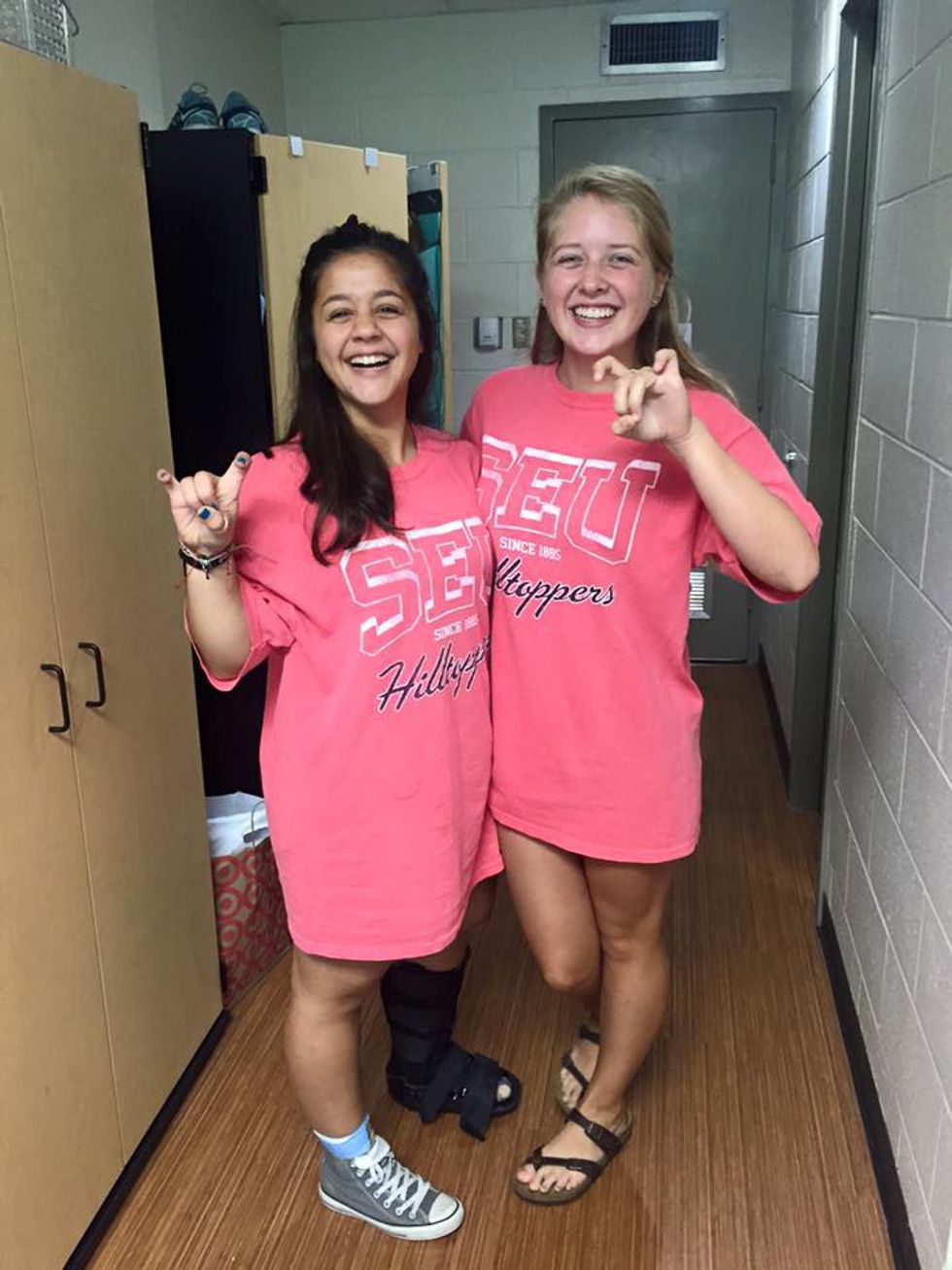 If your roommate becomes your best friend, you spend basically all of your time together even when you're trying to be alone. You get comfortable having someone across from you at night. You find creative ways to do more and still be lazy, like pushing bunks together so you can lay down and watch "Sweet Home Alabama" on someone's laptop. You become attuned to each other's moods and "looks."