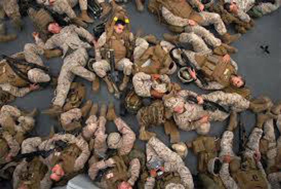Soldiers have been seen falling asleep while geared in full battle-rattle, in the prone position, and even standing up.