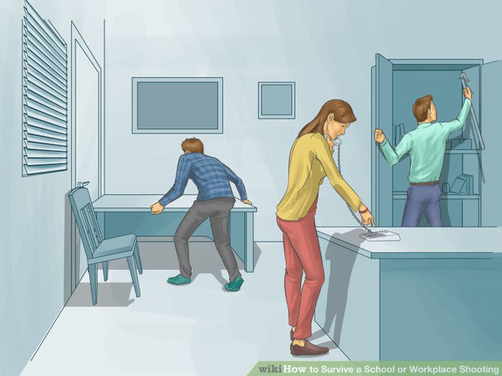 If you can’t get to an exit, try to find a room or small, confined room space you can get to. Then secure the location. Lock or barricade the doors and turn off the lights. Move away from any windows and silent your cell phones. Then hide behind a large item such as a cabinet or desk. Stay there and remain calm. Most active shooter situations are over in 10-15 minutes.