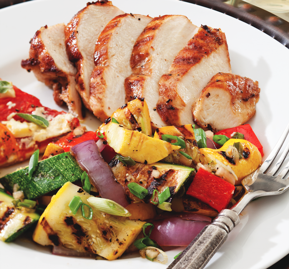 If you have the time, throw a piece of chicken breast on the grill along with some fresh squash or other veggies for a quick and healthy post workout meal. Chicken is a good source of lean protein. The vegetables will add a healthy amount of carbs and give your plate some added color.