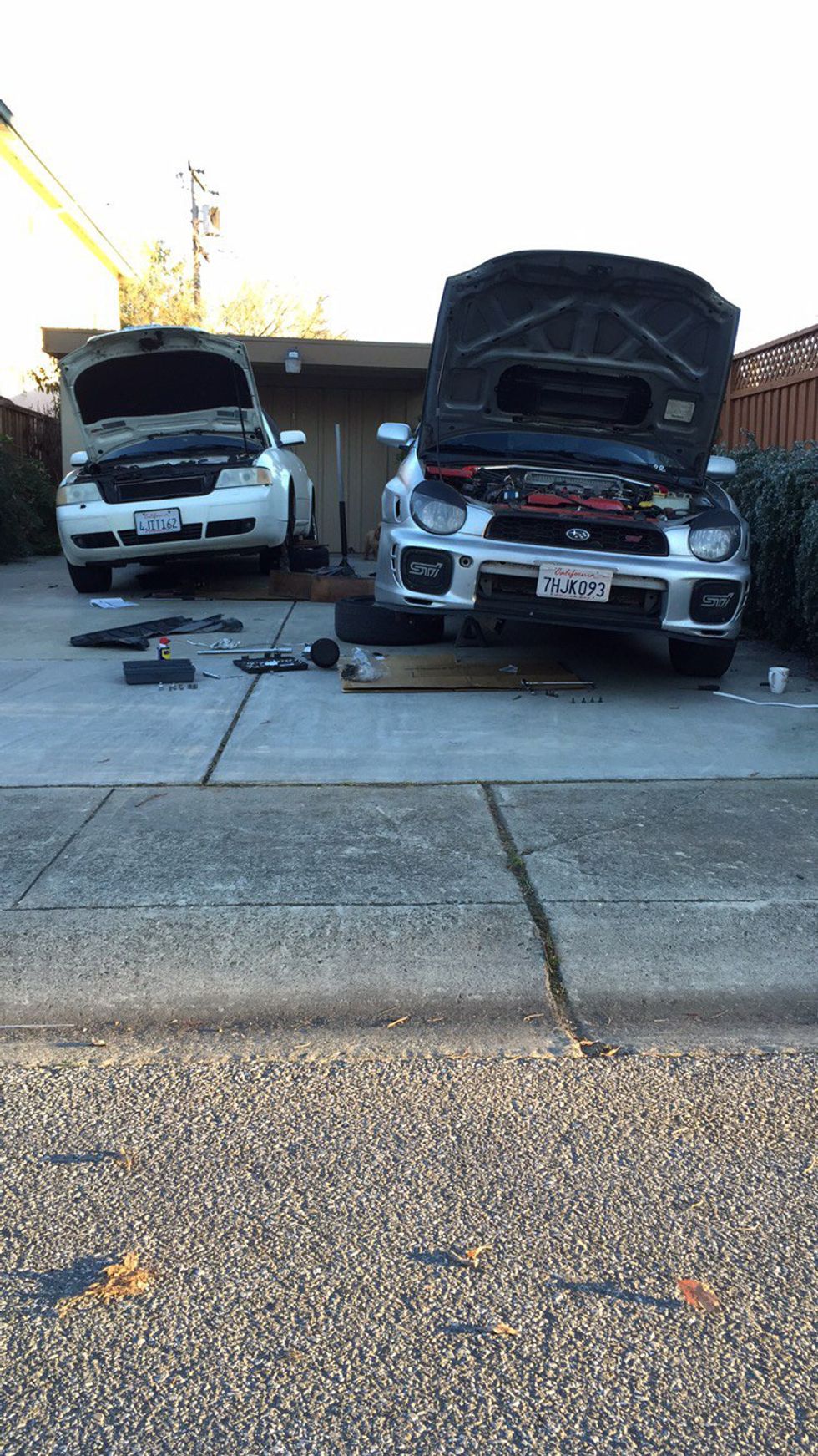 Sorry, petrol heads, I can't defend us on this one at all because it's true. Here's a perfect example of my car and my friend's car on a jack stand date -- a week-long date to be exact.