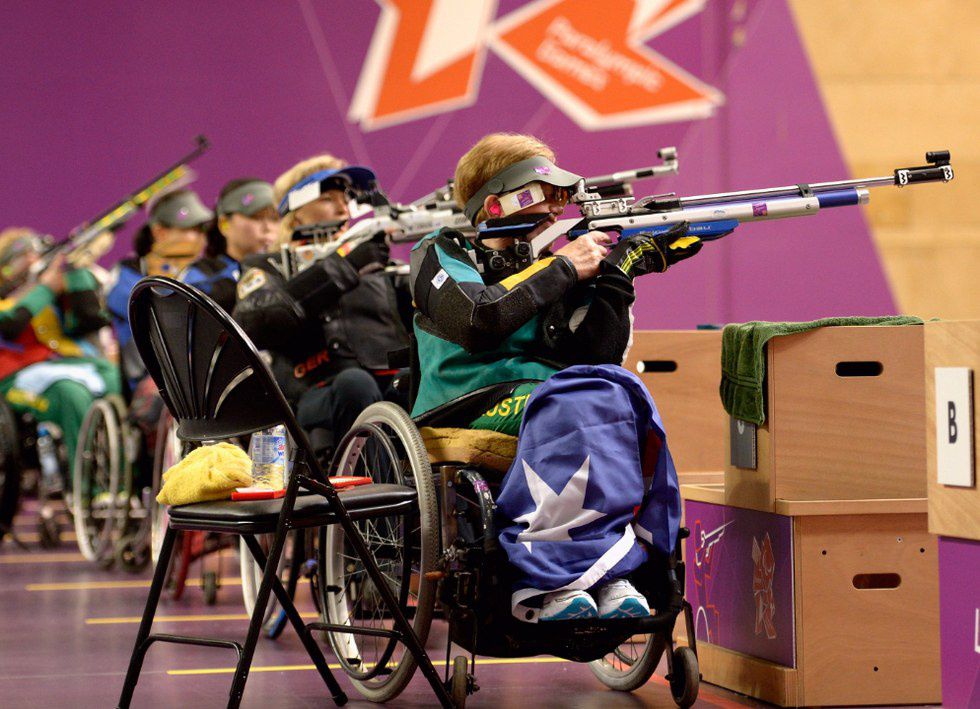 They shoot, they score! Athletes in this event are divided up into three classes and are able to use support equipment, like tables and chairs, to help them take aim.