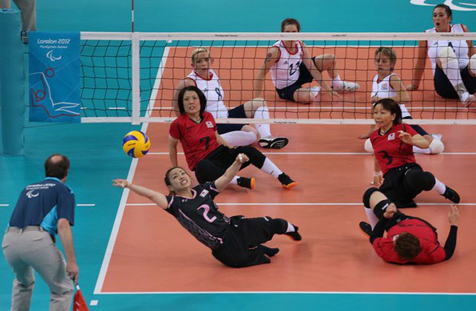 In sitting volleyball, there is one major rule: your butt must be in contact with the floor during your every move. The net is 1.15m from the floor for men (1.05m for women) to comply with this modification of the sport. The first team to 25 points wins a set, and the best of five sets wins the game.