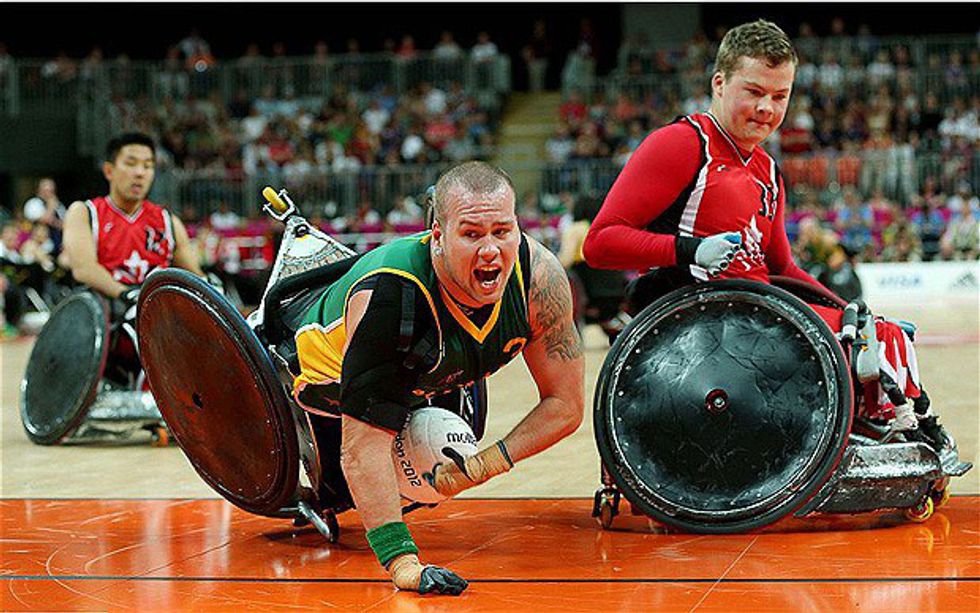Wheelchair rugby, aka "murderball," is one of the most intense sports out there. Crashing is not only allowed, it's encouraged! It's a hybrid of rugby, basketball, and volleyball, and the aim of the game is carry your ball across the goal line.