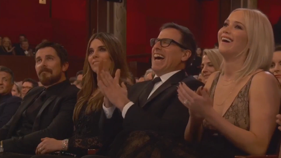 First, let's talk about the folks in the seats. The audience reacted really differently to Rock's jokes every time, including his awkward introduction of Stacey Dash as the elected diversity official. When he was up there making jokes about NPH, they were laughing hilariously, even until the point when he begins talking about more serious stuff. In the middle of his point about how long institutions of racism have been around, the audience starts clapping emphatically, because he says the phrase, "the 88th Academy Awards." They couldn't care less about the context of what he's saying. That's the point: it was all a performance for the cameras.