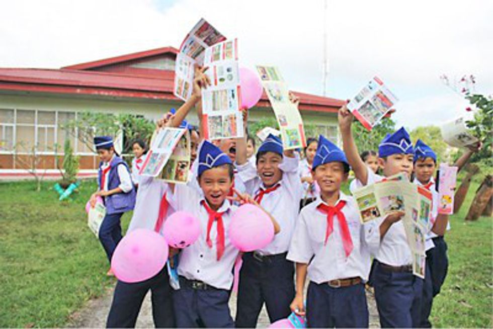These young Vietnamese children celebrate the completion of a risk education class with Project RENEW.
