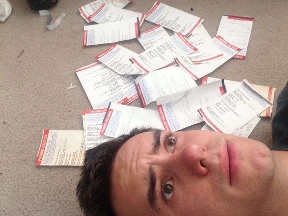 At this point it should be said that all this is completely hypothetical. Pictured below is a hypothetical Boulder boy with his hypothetical Boulder ticket citation hoarding problem and having a hypothetical emotional breakdown.