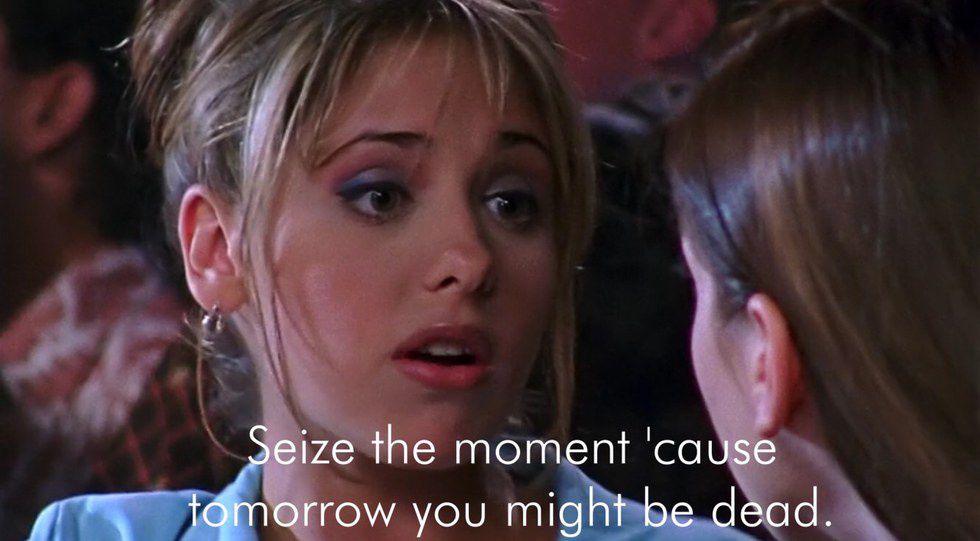 A whole lot of growing up occurs during the years we follow Buffy. But, like anyone, she has to start somewhere. In the first episode, we meet a girl running from a path she considers chosen for her, and as the years go by, her life transitions into one she chooses. Even a rebellious and naive Buffy delivers some simple, yet valuable advice—even though it isn't always received as intended. After all, there is no time like the present.