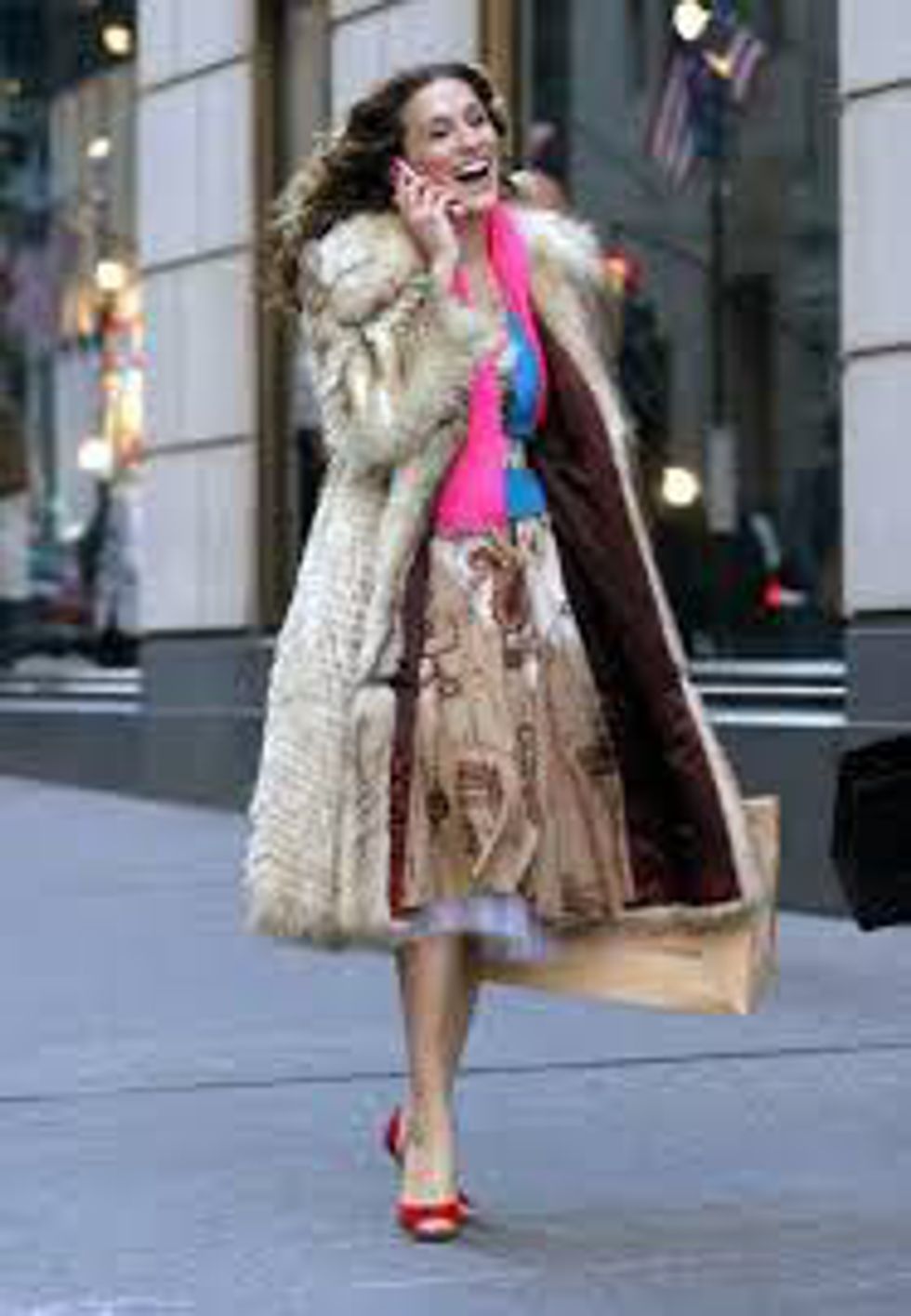 This outfit has a lot going on, but CB manages to make it look flawless. (feat. her signature fur coat).