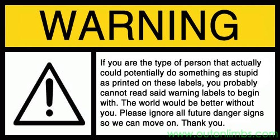 So, I asked people what their warning labels would say. Here are the responses I received from 34 college students: