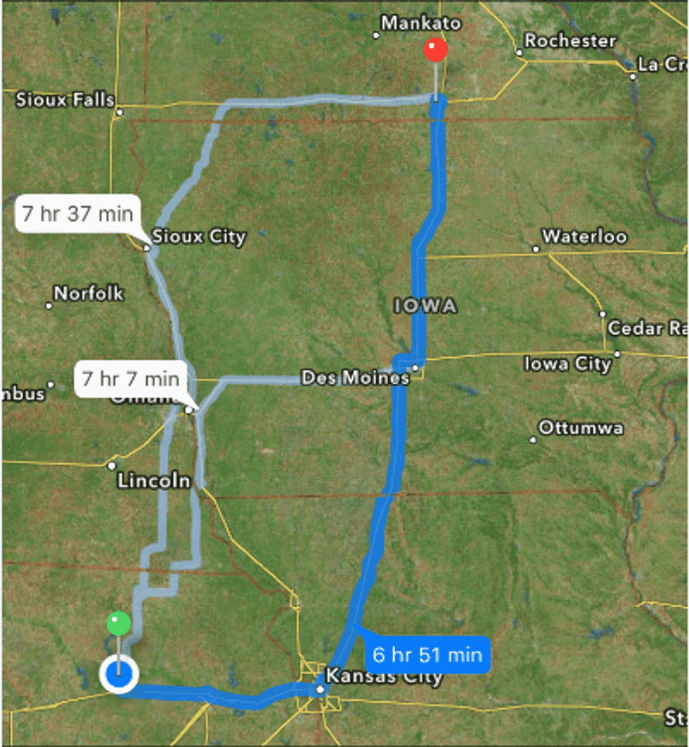I've never understood why this question is important, but people apparently need to know the answer. Hopefully by you telling them how far away it is, they can gather enough information to make an assumption to whether you drive or fly.