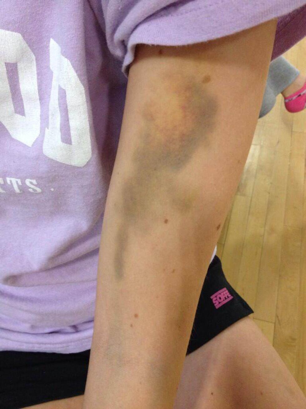 It looked like I got in a fight every practice all four years. If you were a base or a backspot, your arms probably looked like this regularly.