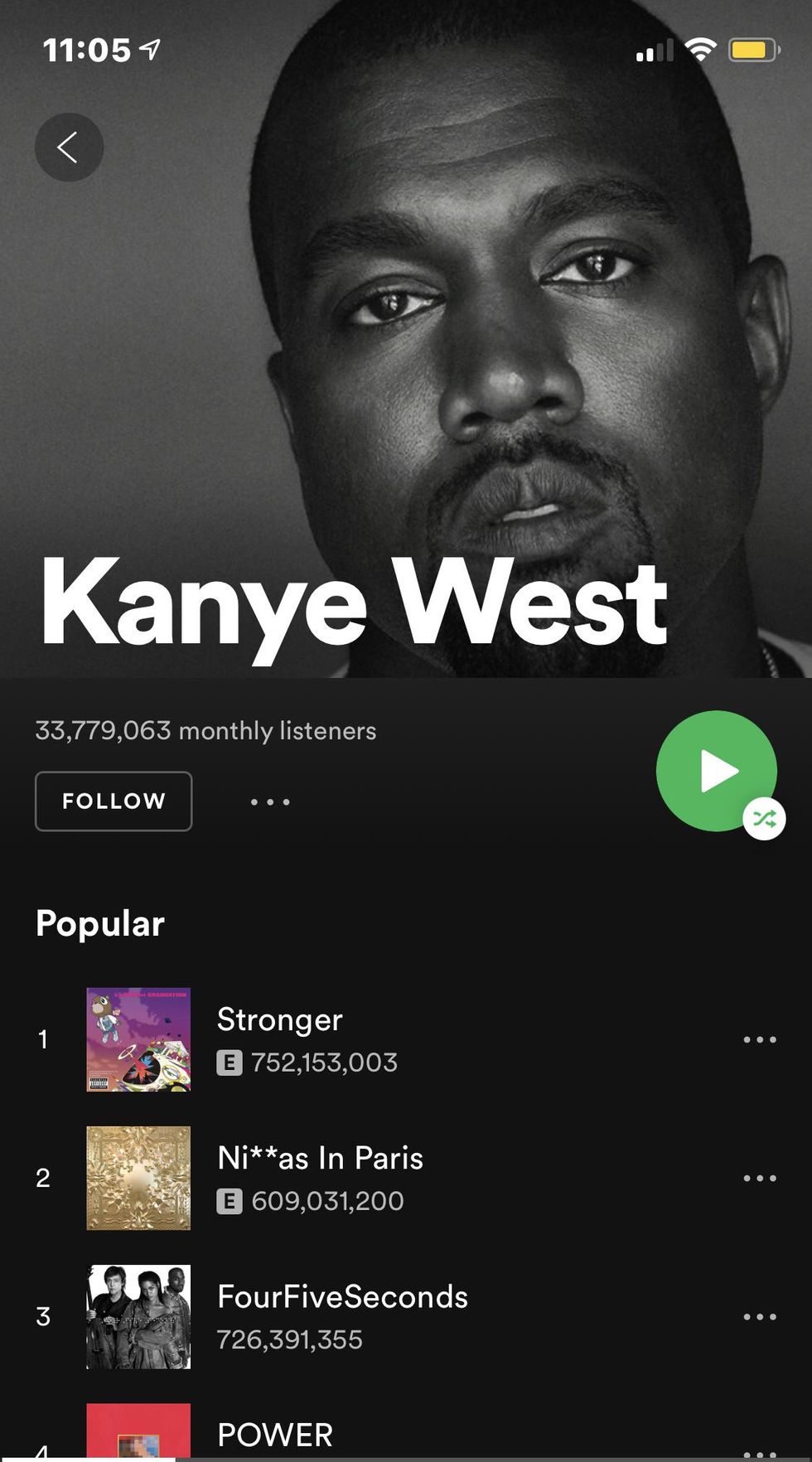 You refuse to acknowledge that Kanye is a different person than he was thirteen years ago so you listen to College Dropout and Graduation enough to make it so he stays your top artist. When someone talks about the wild things Kanye has done this year, you have definitely said the phrase "I separate the art from the artist" in defense of your support for him. If you do listen to modern Kanye, you really are a diehard fan and well, I don't know what to say to that.