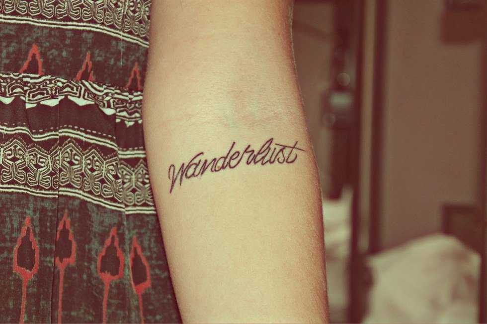 I already had a couple of ideas in my head for what would be the most perfect, ideal tattoo for me. There was a pine tree, which symbolized my extreme love and appreciation for nature and how I loved adventure. There was a tiny sun, to say that, "Things would always get better no matter what," and then there was the word "wanderlust," because for me, I can't stay in one place. I get bored easily and ever since I was little, it was my sole mission to travel the world and see new sights. Everything always seemed endless to me, and the possibilities lacked boundaries. I had adventure running through my veins, and I still do; that's why I got the tattoo of the word "wanderlust" put on me.