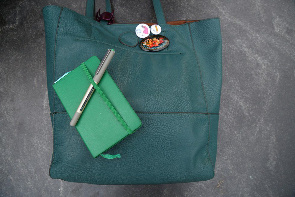 Best or worst thing about your bag: "This bag - which I picked up in one of my favorite boutiques in Mystic, Connecticut - is a lovely color and can hold my gigantic laptop in addition to all of my usual junk. The only bummer is that not too long before these photos were taken it betrayed me and lost the Hillary Clinton pin I’d fastened to it that morning."