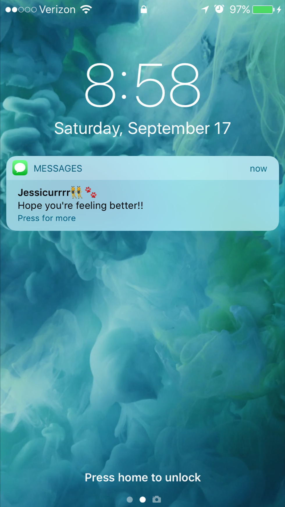 This took a bit to get used to, but it’s really cool because you can interact a bit more on the home screen. But you can see your lock screen behind notifications, instead of it getting blacked out when you have something on your screen! You can also see a snippet of your conversation from your home screen and send multiple messages from the home screen!