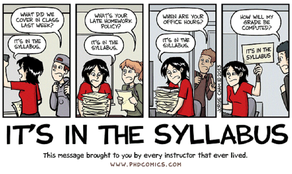 That is a good question! What I usually start out doing before class starts is I print off each syllabus and then each course calendar separately. I highlight the class title and important information on the syllabus, and then I go to the calendar and highlight each class week and stuff that is due.