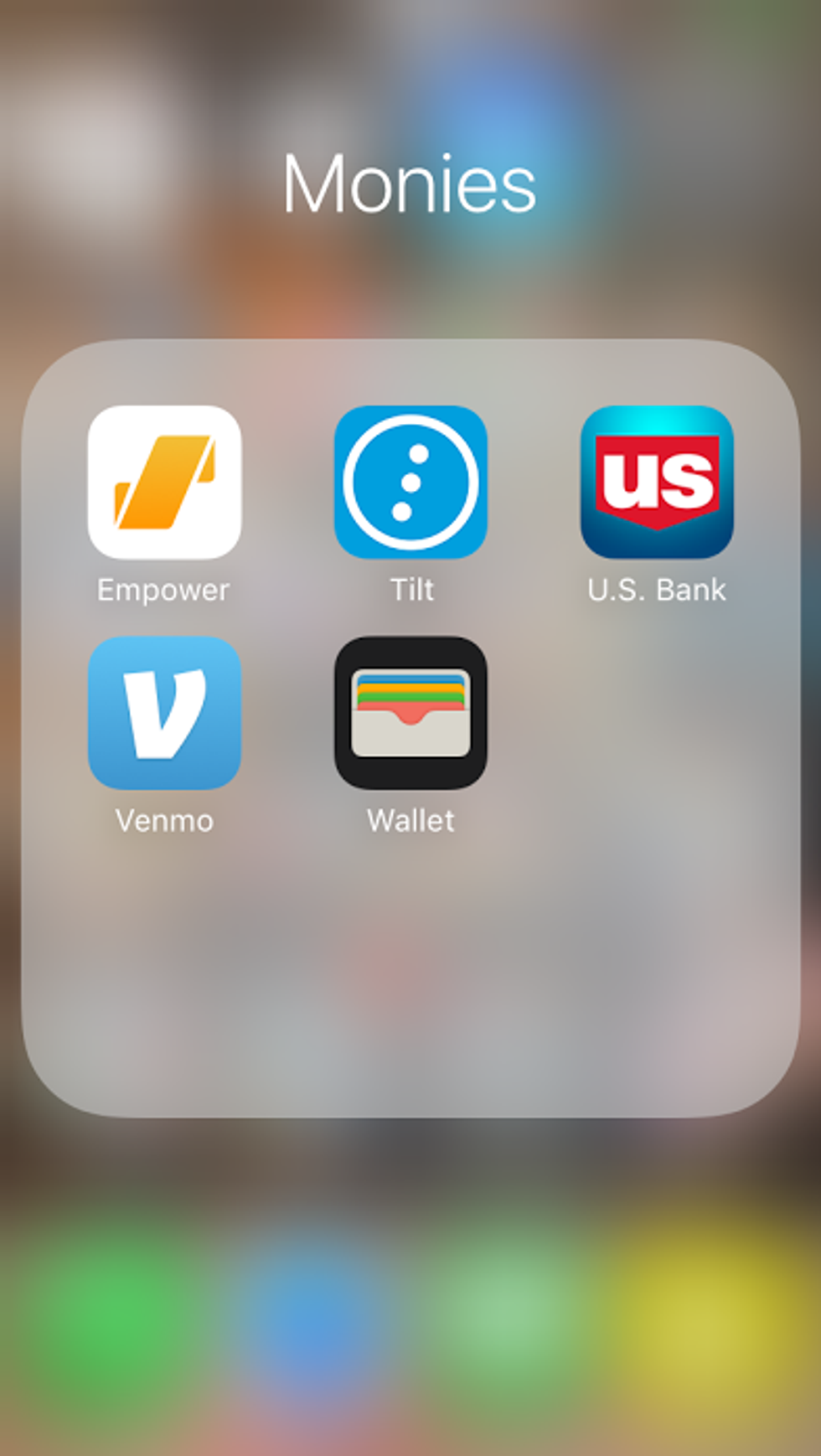 This is where I have all apps that have to do with money! Empower is a budgeting app, Tilt and Venmo are money requesting apps, and then I have US Bank and Apple Wallet.