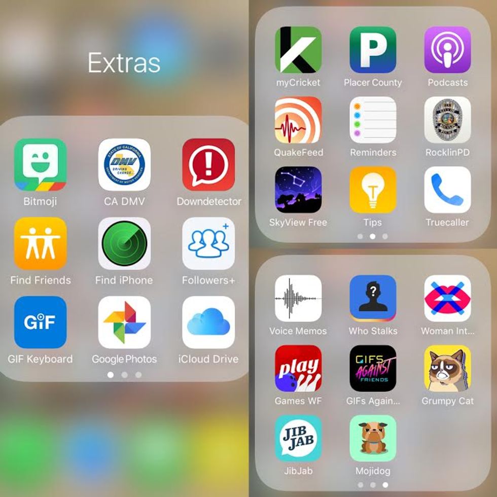 Alright now that we've gotten all the "Extras" out of the way, now we can move onto the actual folders and apps on my phone. I alphabetize my folders and I alphabetize each app inside each folder (I told you I was a nerd).