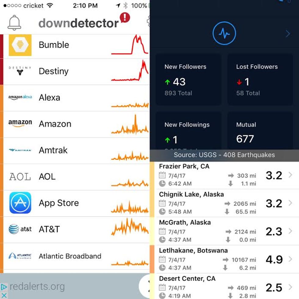 Downdetector is an app that tells you if a website or another app isn't working, Followers+ tells you if anyone unfollows you on Instagram, QuakeFeed notifies you of any earthquakes around the world.