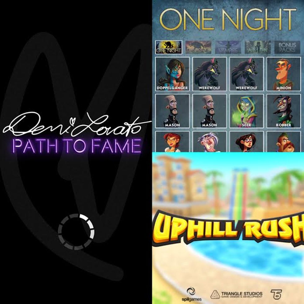 Demi Lovato Path to Fame is an Episode type game where you are a character in a story learning the ropes of being a superstar. The One Night Werewolf app is a companion app to a card game of the same name, which is kind of like Mafia, but with different characters and roles. It's a pretty fun game, and this app takes the role of the narrator of the story during the game. Finally Uphill Rush is a race game, where you are on a raft and racing to the finish line on a waterpark ride.