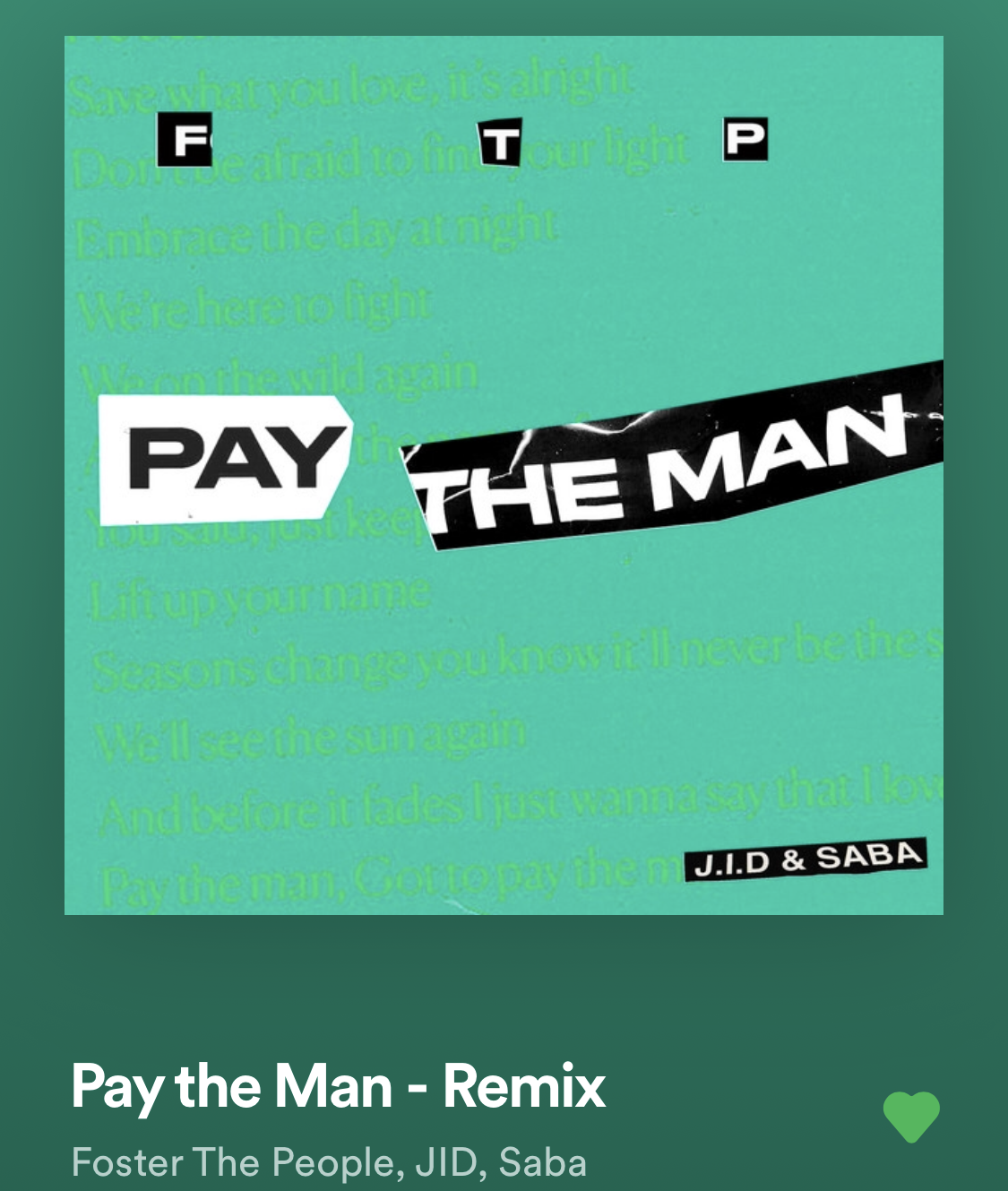 "Pay the Man - Remix" by Foster the People, JID, and Saba