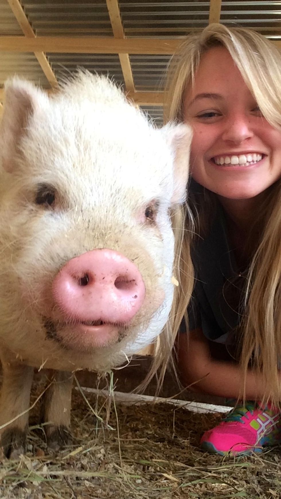 I’ve lived in Summerfield, North Carolina, for my entire life, and for as long as I can remember, I’ve always loved animals. Since I was about 8 years old, I’ve ridden horses and spent numerous hours with every type of farm animal imaginable, from goats to pigs to donkeys. In more recent years, my family has started taking in animals in need of fostering and rescue. So, I now live on a lovely farm and on that farm, we have a couple of spunky, rescued pigs.