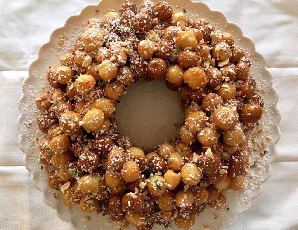 Written on slightly wrinkled paper in ever-fading ink, this recipe in an artifact of decades of holiday tables. As Mom and I stand for hours in the kitchen carefully rolling the dough, we feel the hands of those before us working tirelessly to carry on the tradition. It's the quintessence of pride. Doused in golden honey and shaped into a wreath, these tiny pockets of sweetness symbolize the delectable promise that comes with a new year and new beginnings.