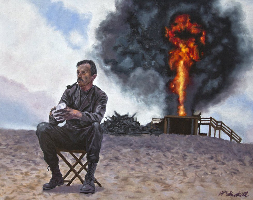 “I haven’t recognized this shit hole since you came.” Swig, and my pipes getta wave of relief. I stare inta rollin heat, paintin the land blue.