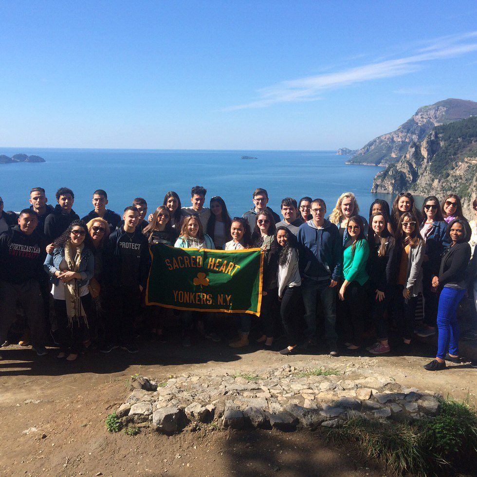 Although the plane ride was nine hours in total between stops, my excitement was growing in me as we came closer to our destination. Once we landed, we met our tour guide who would in fact be with us the entire week we were there. We got on a shuttle that took us across the countryside of Naples and to the beautiful island of Sorrento. Sorrento was one of the most beautiful sights I would ever see: seeing the lemon trees growing in the distance (what Sorrento is famously known for) and the sea stretched out before us. Also, to get to our hotel, we had to cross 700-year-old highways that were carved on the outside of the mountains. That, and the small cars going back and forth, made me realize how amazing that people can actually live here.