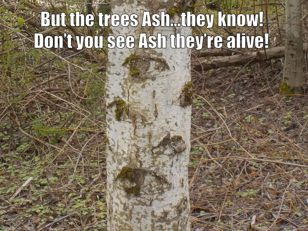 Although I wouldn't recommend eating the mushroom pictured above, especially if there are trees around like the one pictured below. That is a bad trip waiting to happen, with ominous Evil Dead vibrations that will toy with your mind: