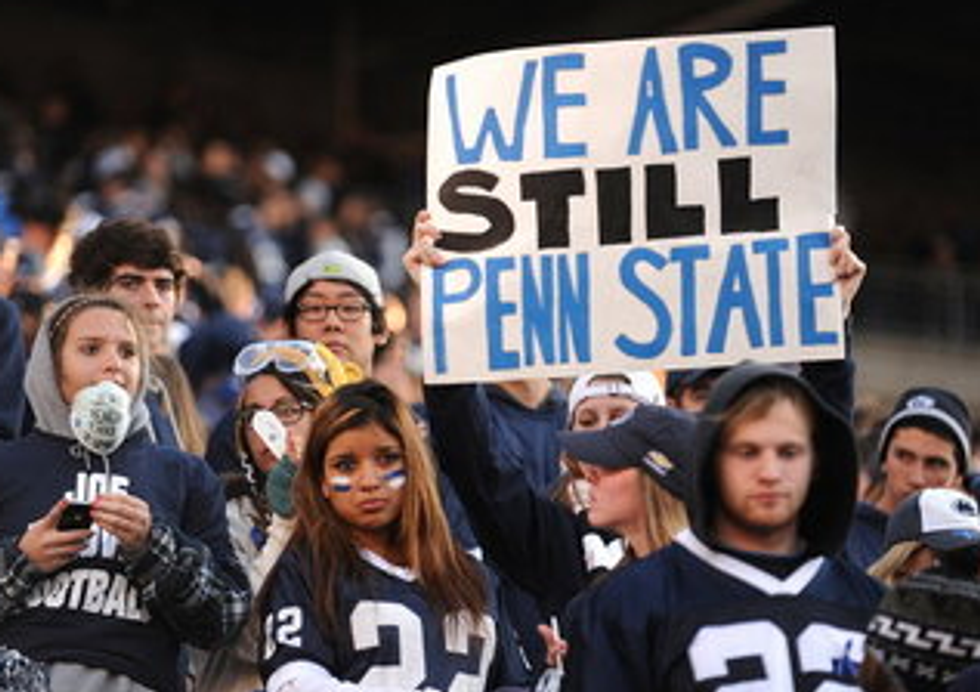 Penn State is an amazing school, and I can't wait to spend the next three years of my life here; growing, getting an education, and meeting people I will cherish for the rest of my life. We Are, because he was and I will stand by my school every step of the way. There is allowed to be a rivalry between schools, that's what makes sporting events that much more intense, but honestly the rape jokes need to stop. There is so much more to this school than being known for what Jerry Sandusky did to those innocent young men. These jokes are not okay, nor will they ever be. So next time before you make a joke about what happened here, imagine if that was you everyone was joking about, and see how funny it is then.