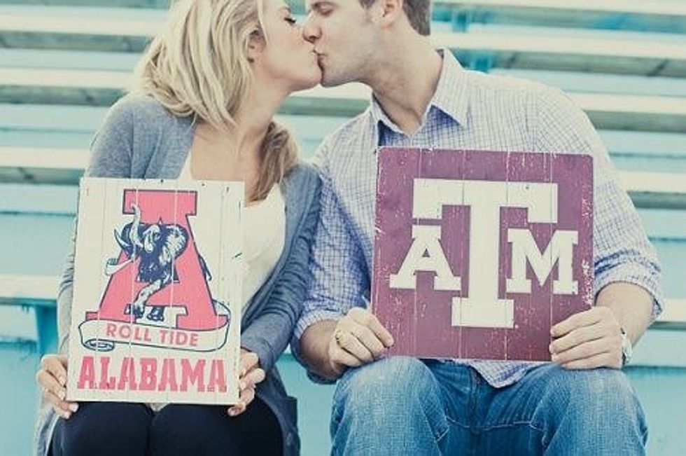 Usually when you’re growing up cheering for a certain team you’ll sometimes think, “No way would I ever date someone who’s an (insert team name here) fan” and cross your fingers you’ll meet someone who likes the same team as you do. But life can be funny and lead you to someone who you’ll fall in love with, but that person, of course, loves the team you hate. Like me, I am a Longhorn fan and my boyfriend is an Aggie fan. And once this relationship continues on, you hit many bumps in the road and questions that you have to deal with.