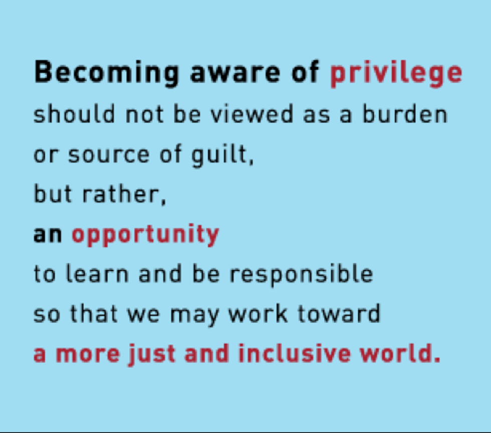 These failures were not directly their fault. As said before, the intention was exactly what it should have been, but the knowledge of the world outside their own was lacking entirely. This is white privilege, not knowing what it's like to live in fear of violence because of race. White privilege creates blinders to where all we see is the world in front of our own eyes, and not those next to us whose vision is filled with a whole lot more fear, a different kind, based on the color of their skin.