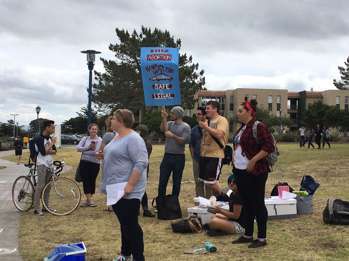 This group consisted of old men and on the second day, a woman from a pro-life organization in Monterey joined in. Several of the complaints students had for the group is that they should not be talking about issues such as this due to their absence of an ability to carry a baby. Why should their opinions limit what other people can and cannot do with their body? Also, in the case of the woman, she was all about providing resources, but when questioned on other issues such as rape she stated like the others that the victim should keep the fetus. When students tried to ask her if she had been in a situation such as that she refused to answer by saying it had no relation to the point. In other words, these people have formulated opinions on what others should do with their body even when not being in a similar situation. My problem is that I cannot see why their opinions should affect someone’s choice of what they can do with their own body.