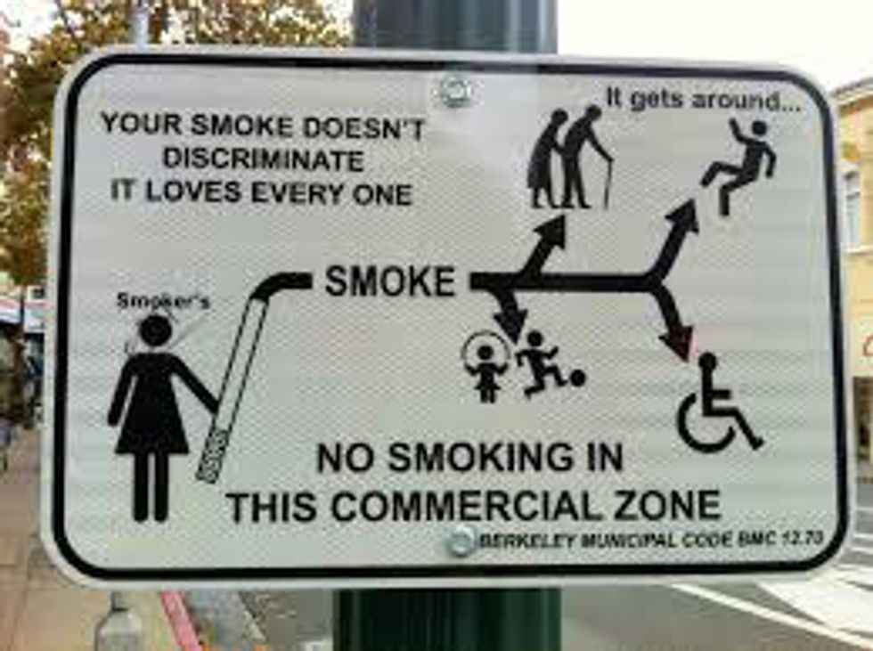 For some reason we still have ignorant smokers out there that you see smoking around kids, in apartments they were not asked to in, within a close distance to hospitals, and around non-smokers that express their choice to avoid 2nd hand smoke. Smokers neglect to realize that kids are too young to know that your choice is hurting them and speak out. Smokers neglect to realize that people that go to businesses may have asthma, be pregnant, or even have lung cancer. These people should not have to walk through your smoke to get to their public destinations. And my personal favorite example of ignorance - drive-thru smokers. If you can't smoke within 50 feet of a business what makes it safe to assume you can smoke 1 foot from the window? Because the worker serving you gets paid enough to subject themselves to your poison? Because your chances of triggering an asthma attack are as slim as you smelling gross all the time.