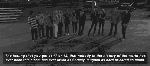 This show has made me realize that things aren't going to ever stay the same. We are going to grow to be different people than who we were in high school, and that's okay. If we wish hard enough and chase our dreams rather than waiting for them to come to us, we will live the happiest versions of our lives. Our friends in high school aren't always going to be our friends forever, but as long as you are able to look behind you and see people that you know will always have your back then you are perfectly fine. All you need in your life are people you know will support no matter what. Sometimes, those people may leave, or the number of people may change, but as long as you have somebody you know you can always turn to... I'd say you're doing just fine.