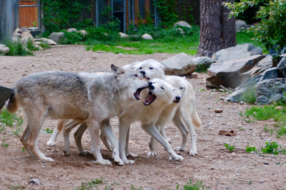 Social bonding behaviors between the wolves at the International Wolf Center. Photo by Haleigh Gullion.