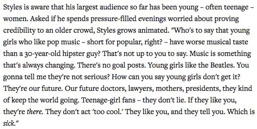 Right before the end of this past school year, Harry Styles did an interview with Rolling Stone that included this quote: