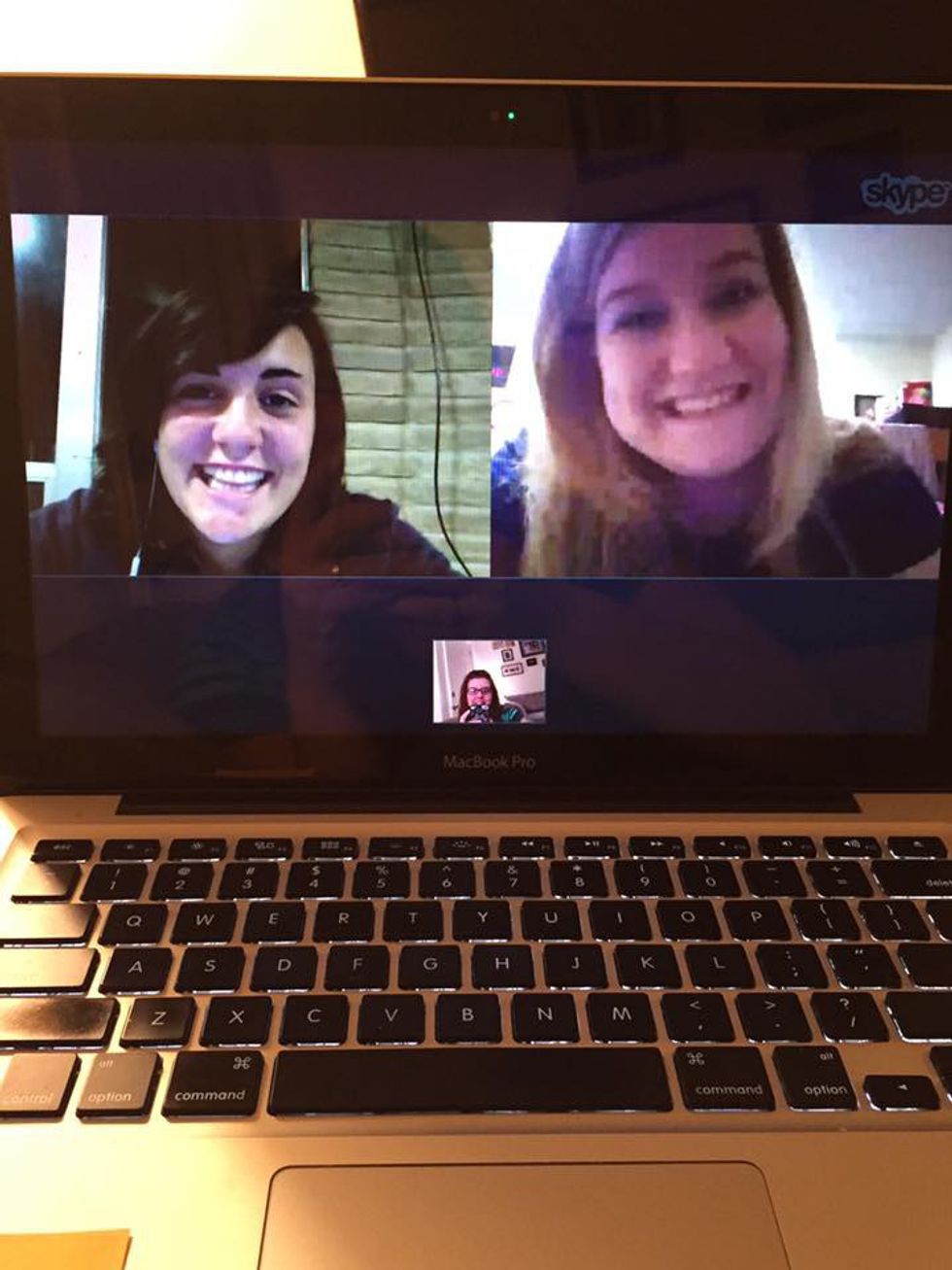 Text conversations happen pretty much 24-7, phone conversations are reserved for important things or when there is simply too much to catch up on. Skype is for the extra special moments where you might just burst if you don't get to see her face. Added bonus, when you three-way Skype with your mutual best friend who is just one of the siblings by this point.