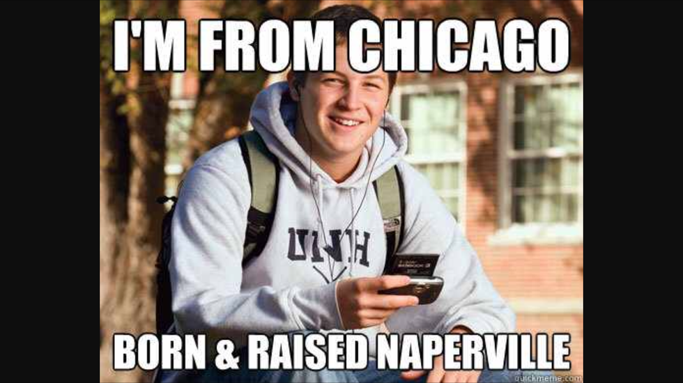 So you can understand my dismay when I got to college and learned that anyone who lives in a 100-mile radius of Chicago tells people they're from Chicago because it's easier to understand than saying they're from "insert suburb/farm town here." I get it, nobody knows where Crystal Lake is, so why not just say you're from Chicago? It's 45 minutes away, same difference... Right?