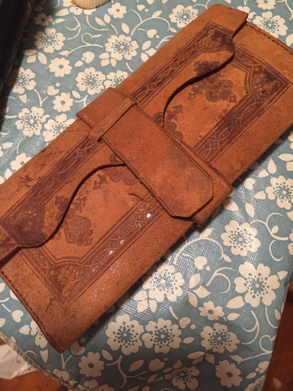 I look at the intricate stamped pattern, and I wonder who burned that into the leather. I wonder who cut it and who stitched it. I wonder if they had a machine to sew it, or if they did it by hand.
