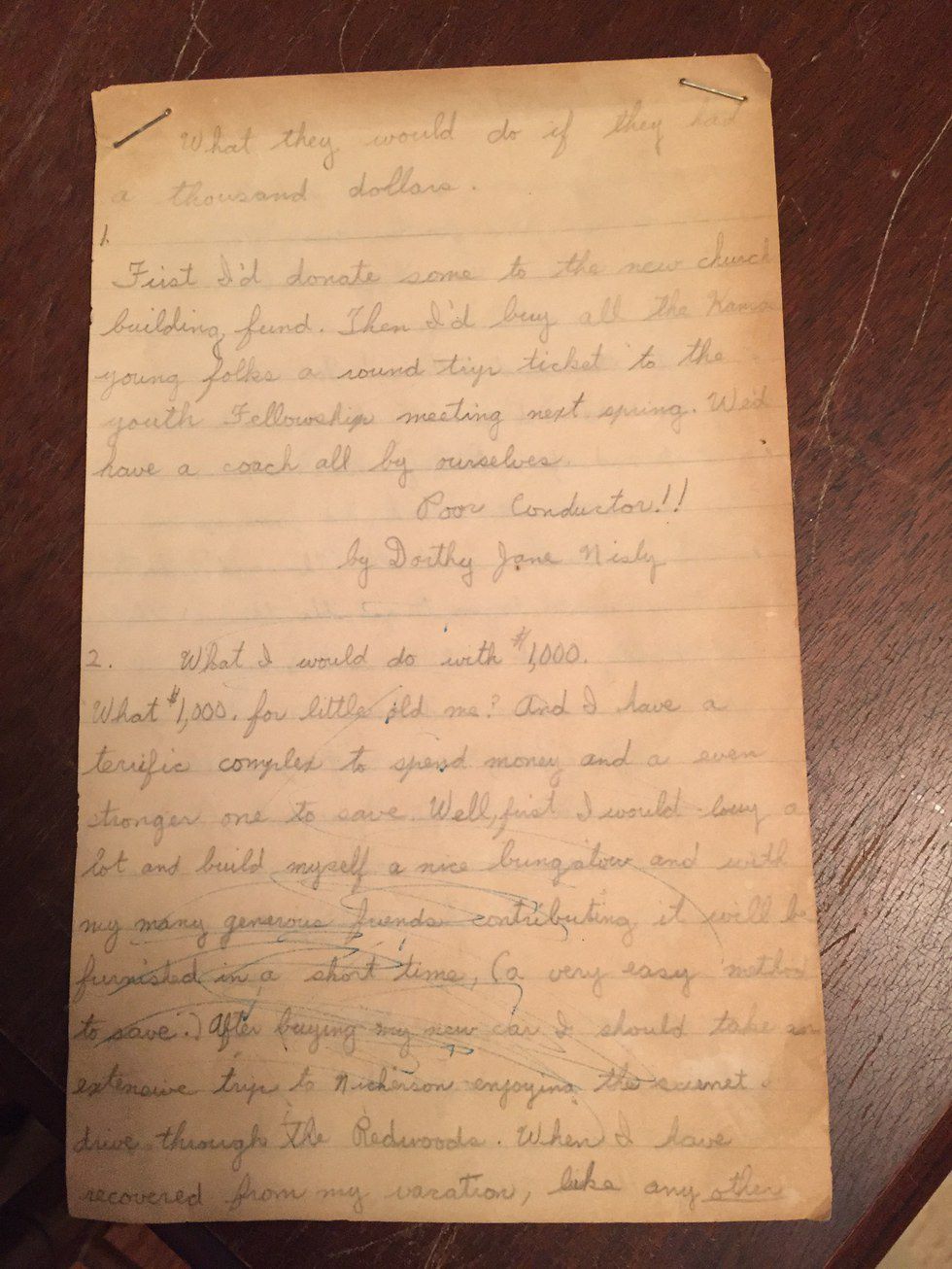 Consider an old letter Karen found, titled, “What they would do if they had a thousand dollars.” Different young men and women in the youth group, probably in the late 1960’s, accepted this challenge question.