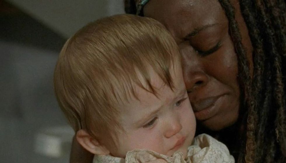 But I mean, did they forget to grab the poor baby from her bed when Alexandria was infiltrated by zombies because where the hell is she? And if she wasn't left behind, whose watching her and where is she now?