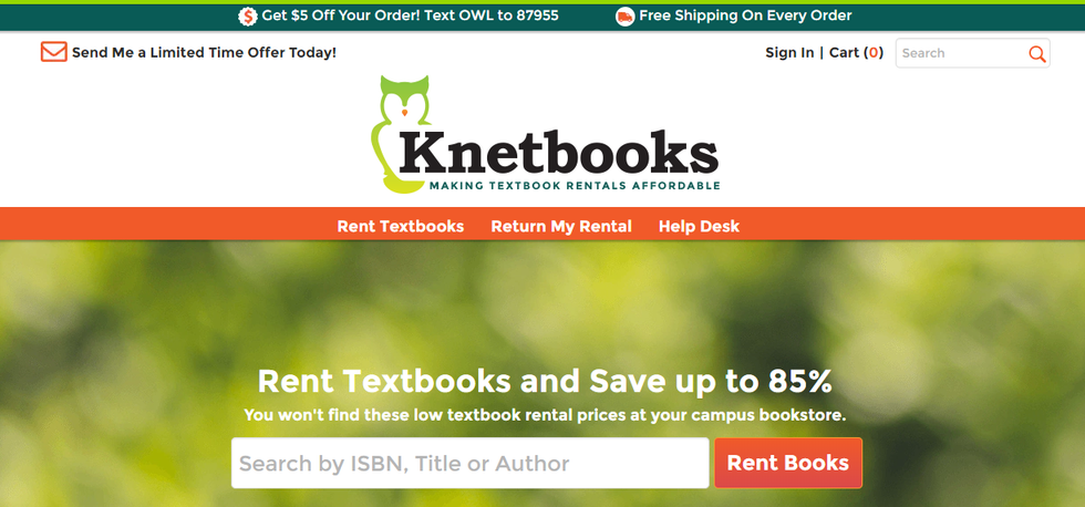 Very similar to Chegg, Knetbooks is an affordable textbook rental site. The bonus of Knetbooks is that you get free shipping on every order, and when I Google-searched for a coupon code, I found one and got an additional 5% off my order. That doesn't sound like a lot, but every dollar in college matters.