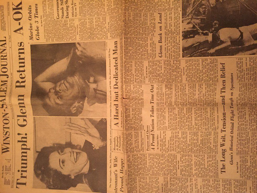 Today, my father showed me a newspaper he had found in our house, excitedly explaining that it was from the year 1962. The paper starred John H. Glenn Jr. and his voyage around the Earth; he had successfully orbited the globe three times. Most of the paper was about this extraordinary event, as all eyes were on him and a sense of pride had swept the nation with his success. Accounts from John Glenn's wife and parents filled the pages, alongside political policy paragraphs, criminal cases and obituaries. It was not until I reached page ten of the newspaper that I stumbled across a small section known as "Activities of Colored People". Though I had studied the time period before and was familiarized with the culture of America in the 60's, holding a newspaper from the time somehow made it seem incredibly recent. From reading a simple sample of the extremes of the positives and negatives of the 1960’s, I found I felt shocked, at first, and then somewhat proud. America as a nation, though greatly imperfect, has come so far from where we were in the 1960's. Not only can we now achieve more than we ever would have thought we could have just 54 years ago in terms of technological advancements, we can achieve, and have achieved, more than what could have been imagined by American minorities in the 1960’s. The strides we as a nation have taken in this relatively short time have been spectacular. There is so much left to do, but there is also so much that we have done. One day, the word of our time will be read as a blast from the past, as this newspaper was by me. Lets work to make what they read a story to be proud of.