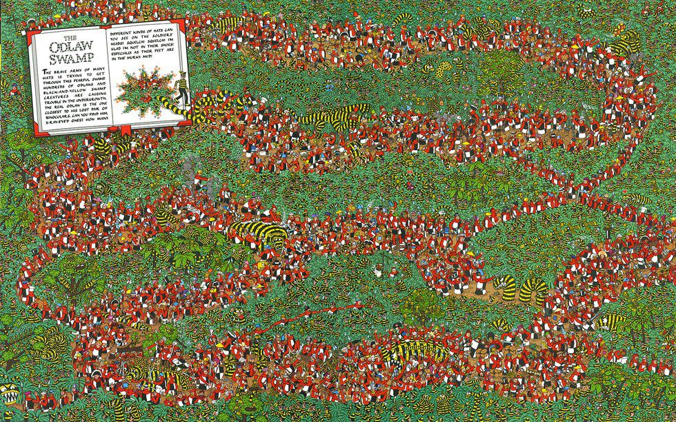 I actually feel kind of sorry for you. Me, writing this line of text, fully knowing how and where to find Waldo, and you, desperately seeking to win my approval by searching for the man in red and white stripes. I can't say I blame you, really. Many have spent their whole lives searching for him. Some say those people start seeing Waldo everywhere. They can't stop.