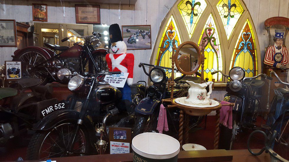 White Fence Farm, located in Romeoville, Ill., reopened on February 2, 2016 for their 62nd year. The first thing you notice about this place is the variety of chicken-themed carpet and rare antique items throughout. There is a hallway dedicated to old cars, parts, stained glass windows, old-timey big wheel bicycles, dolls, funky mirrors. A hodgepodge of old kitchen and farm appliances, old arcade games and quarter-dollar fake pony rides, and so much more.